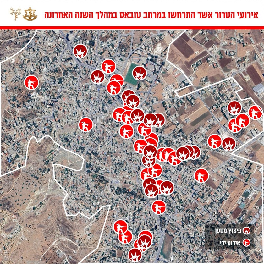 Рекорд, конечно, у Тубаса, его жители 30 раз за год обстреливали израильтян и 20 раз пытались взорвать. Фараа больше специализируется на взрывах – их там за год устроили 37 штук, а стреляли только 6 раз. Для наглядности ЦАХАЛ опубликовал сегодня карты инцидентов.