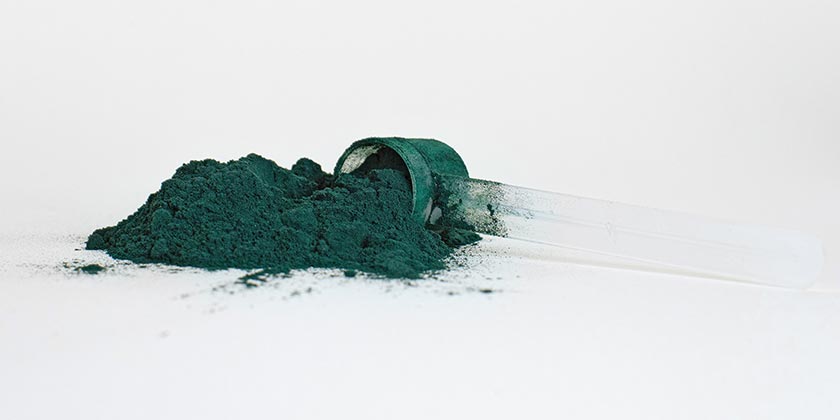 Одна-две чайные ложки порошка спирулины в качестве добавки, например к фруктовому смузи, значительно повысят питательную ценность блюда и обогатят его доступным растительным белком.