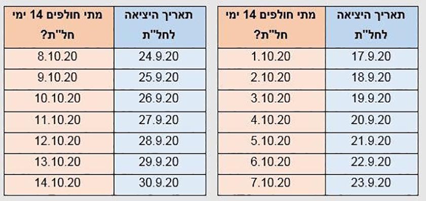 Дни в отпуске считаются, включая пятницы, субботы и все праздничные дни, указали в «Битуах леуми». В Службе составили таблицу, которая поможет определить, с какого числа вам полагается пособие по безработице.