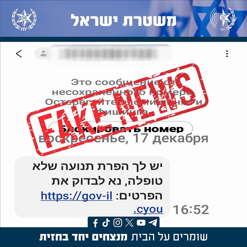 Полиция Израиля предупреждает, что рассылаемые СМС о неоплаченных штрафах за нарушение правил дорожного движения отправлены мошенниками.