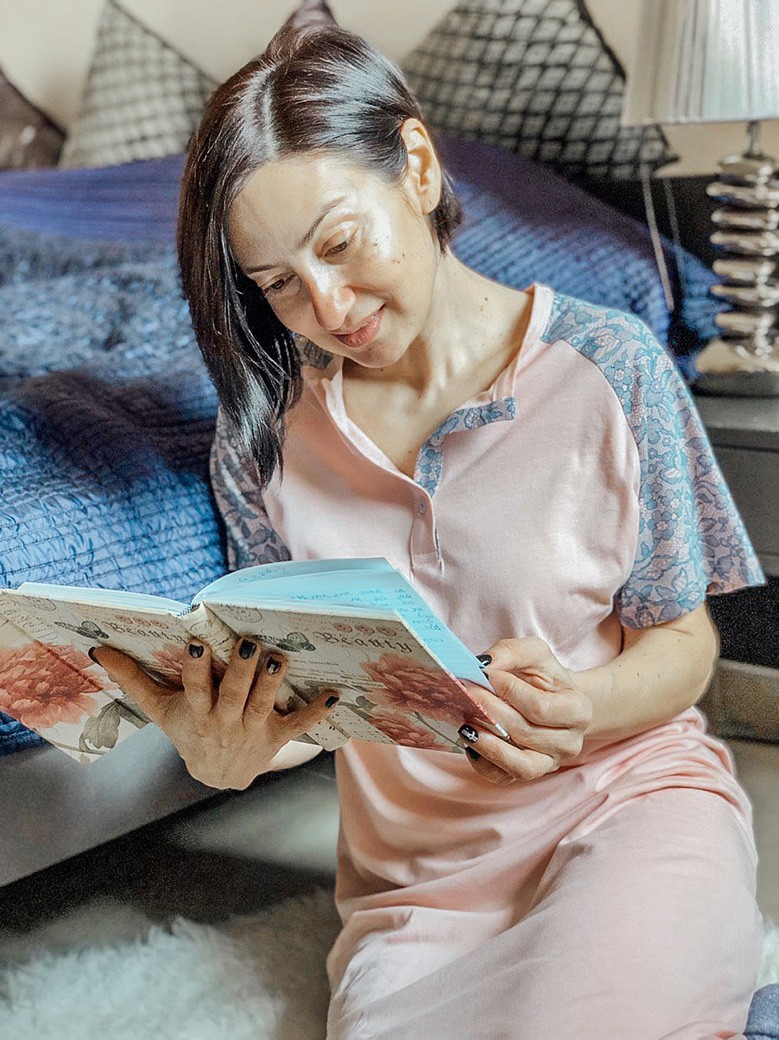 Когда я открыла красивую коробку и развернула хрустящую бумагу, то просто не поверила своим глазам: тончайшее кружево, бархатные ленты, жемчужные пуговицы — эстетическое наслаждение, а не домашний костюм. О качестве материалов и пошива, поверьте мне на слово, говорить излишне.