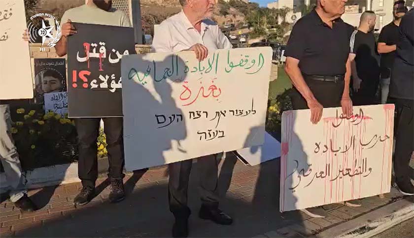 Он добавил: «В то время как они прячутся, пока в арабском обществе свирепствует преступность, они направляют крупные силы в город, чтобы жестоко нападать на женщин и молодёжь, которые мирно выражают своё несогласие с войной».