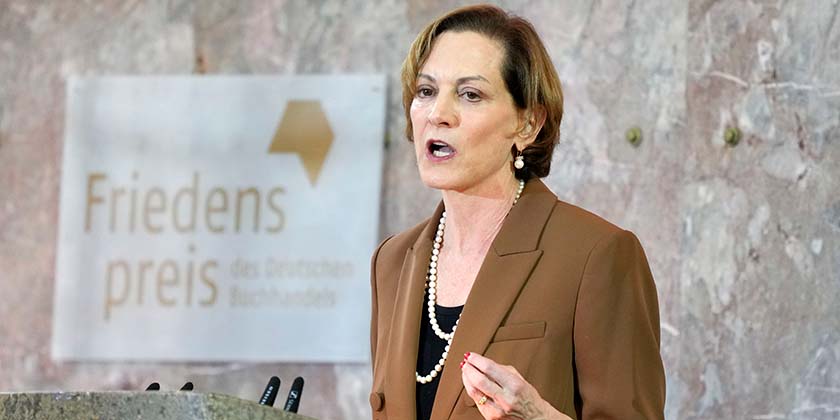 Фото: Энн Эпплбаум на вручении Премии мира Немецкой книжной ярмарки во Франкфурте. AP Photo Martin Meissner ∇