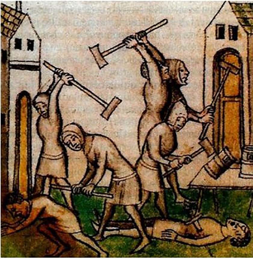 К XIV в. за евреями окончательно закрепляется роль универсальных козлов отпущения, а властители всё чаще практикуют увлекательный спорт «выгони евреев — отбери имущество — потрать — призови евреев обратно». В 1306 году вечно нуждающийся в деньгах на бесконечные военные кампании Филипп IV распоряжается изгнать всех евреев из Франции, но в 1315-м его сын Людовик X (1314–1316) зовёт их обратно — не просто так, конечно же, а за солидный взнос в королевскую казну. Про Людовика часто пишут, что он взял евреев под своё личное покровительство и вернул им их синагоги и кладбища — только забывают упомянуть, что и за это общине пришлось щедро заплатить. А между тем, очередная эпоха их пребывания в Париже окажется на редкость короткой — уже в 1321 году по стране прокатывается волна погромов и костров: евреев обвиняют в отравлении колодцев (то ли лично, то ли руками подкупленных ими прокаженных). На парижскую общину сначала накладывают штраф в 150 тысяч ливров, а на следующий год и вовсе изгоняют. Еврейское присутствие в городе заканчивается на следующие четыре десятилетия.