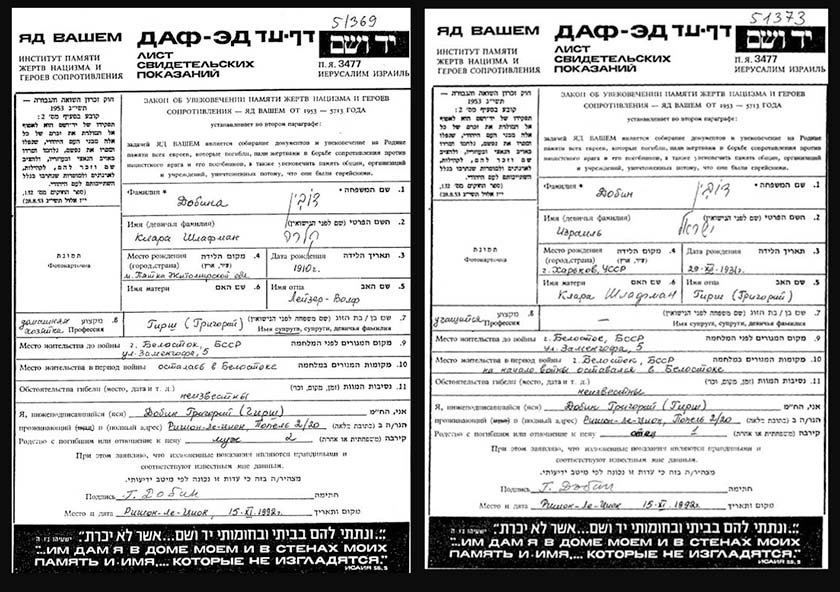 После войны Гирш Израилевич узнал, что его жена Клара и маленький сын Изя погибли в Белостоке. В Жлобине была убита его сестра Сарра c мужем Мойше Фрадкиным, в Харькове – сестра Зэлдэ с семьей, в боях против нацистов погиб призванный на фронт брат Зяма.