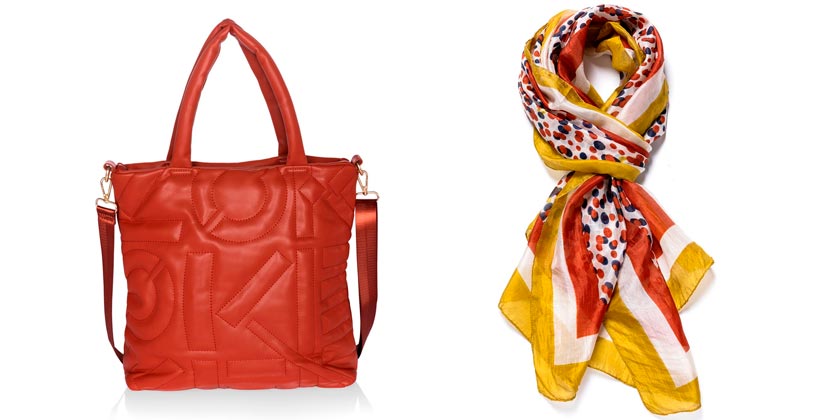 К примеру, возьмем за основу классическое маленькое черное платье. Если дополнить его ярким платком в оттенках желтого и красного (69,90 шек.), небрежно повязанным на шею, и объемной удобной красной сумкой (99,90 шек.), в которую вместится все на свете, получится стильный образ в стиле кэжуал.