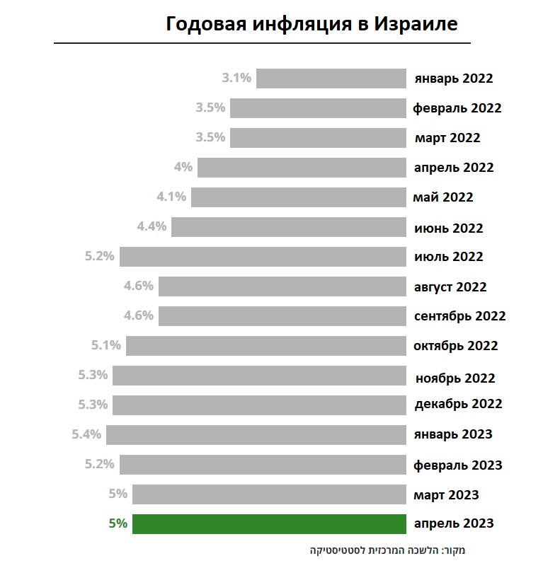 Индекс потребительских цен рассчитывают на основе корзины из 1300 товаров и услуг, которые потребляет большинство домохозяйств в Израиле. У каждой категории расходов («одежда», «обувь», «продукты») есть свой вес – в зависимости от средней доли этих расходов в семейном бюджете. Самая «тяжелая» категория – арендная плата за съемное жилье. Она была одной из тех, что «тянули» индекс инфляции вверх в последние месяцы.