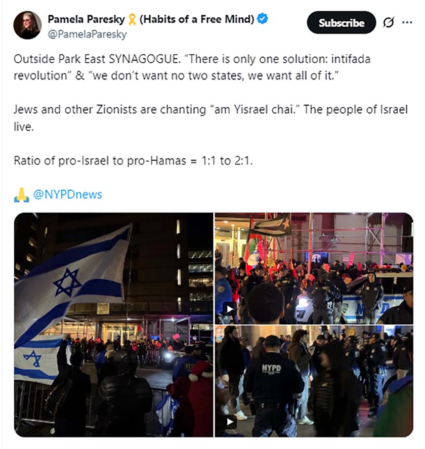 Outside Park East SYNAGOGUE. “There is only one solution: intifada revolution” & “we don’t want no two states, we want all of it.”