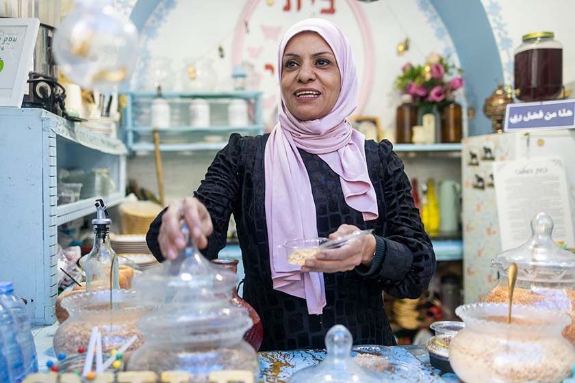 Это кондитерская «Дом малаби» Тины Хатиб. Ее история успеха как будто из американского кино или со страниц феминистской брошюры, так что про бизнес Тины написали, кажется, все главные израильские СМИ. Женщина из консервативной арабской семьи. В 40 лет она развелась, осталась с 3 детьми и решила начать бизнес.