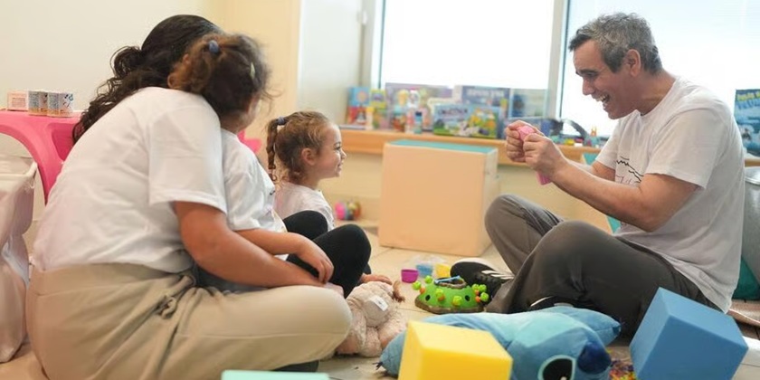 Для семьи организовали в больнице настоящую “игровую комнату”, где дети смогли впервые за два года поиграть с отцом.