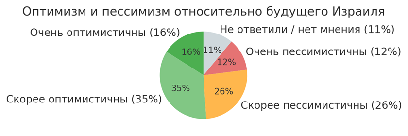 Последний вопрос касался взглядов на будущее страны. Оказалось, что 51% респондентов настроены оптимистично (16% очень оптимистично и 35% довольно оптимистично). Пессимистов оказалось 38% (26% довольно пессимистичны и 12% очень пессимистичны).