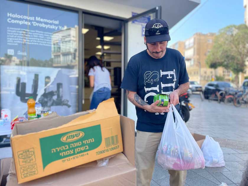 Продуктовые наборы комплектовали в Украинском культурном центре – и в помещении, и на тротуаре рядом. Здесь же, на тель-авивской улице Ирмияху, в это же самое время в кафетерии через два дома другие волонтеры собирали другие посылки, для солдат ЦАХАЛа, а еще через 300 метров работал еще один пункт сбора, еще для кого-то… «Мы ходили друг к другу за коробками, когда заканчивались», — рассказывает Жарова.