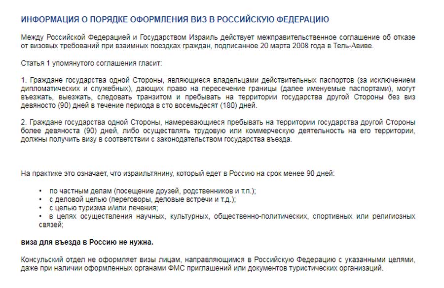 «Израильтянину, который едет в Россию на срок менее 90 дней: