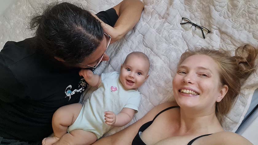 «Когда мы вернулись, Элад начал ездить туда почти сразу, а я только в июне 2024 года. Мне было очень больно и страшно обидно. Мы переехали в тот дом, где были 7 октября, лишь в январе 2023 года. Я была уже на седьмом месяце беременности. Я там собиралась свить уютное семейное гнездо и растить ребенка, а может, и следующих, пока мы не построим собственный дом в кибуце… Мы были полны надежд и радужных планов».
