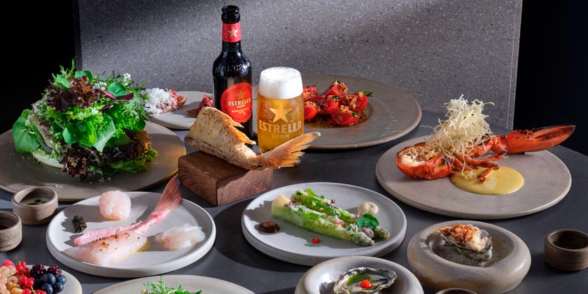 Для овощных, рыбных закусок и главного рыбного блюда знатоки советуют выбрать лагер Estrella Damm – легкое светлое пиво премиум-класса с 4,6% алкоголя, неотъемлемая часть каталонской культуры и настоящая «звезда Барселоны». Этот сорт пива отлично гармонирует со свежими и печеными овощами, салатами, овощными карпаччо и антипасти. Такие блюда, как роллы, гравлакс, савиче, жареные кальмары, копченые мидии, ризотто с дарами моря, запеченная или жаренная рыба, лосось и заливная рыба также прекрасно подойдут к Estrella Damm.