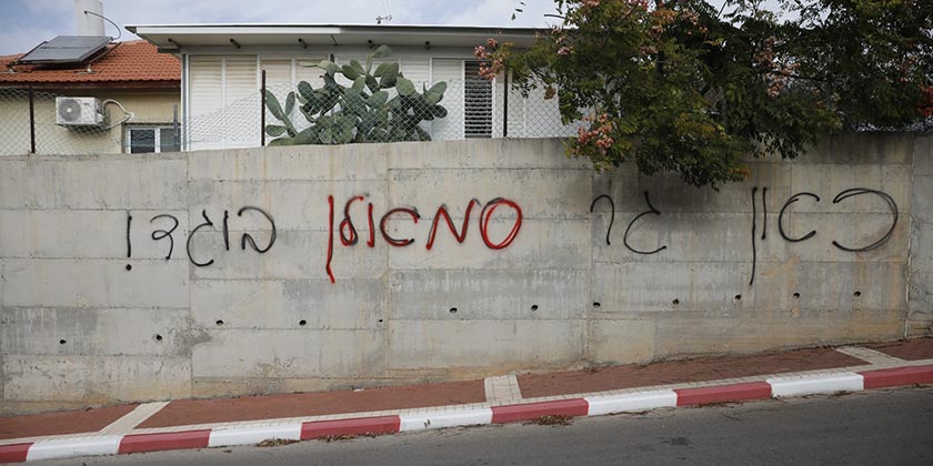 Надпись на стене дома, где живет человек, активно выступающий против политики Нетаниягу: «Здесь живет предатель-левак». Не в Иерусалиме, где атмосфера накалена. Не в «государстве Тель-Авив». Надпись сделали, как ни странно, в Нес-Ционе. Вот такое «сионистское чудо».