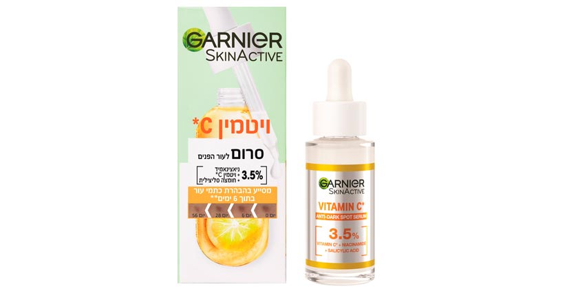 Международный бренд по уходу за кожей Garnier представляет новинку в Израиле – первую антипигментную сыворотку с витамином С, салициловой кислотой и ниацинамидом, которая выравнивает тон, придает коже сияние и помогает осветлить пигментные пятна всего за шесть дней. Только в мае ее цена составит 49,90 шекелей (вместо 59,90).