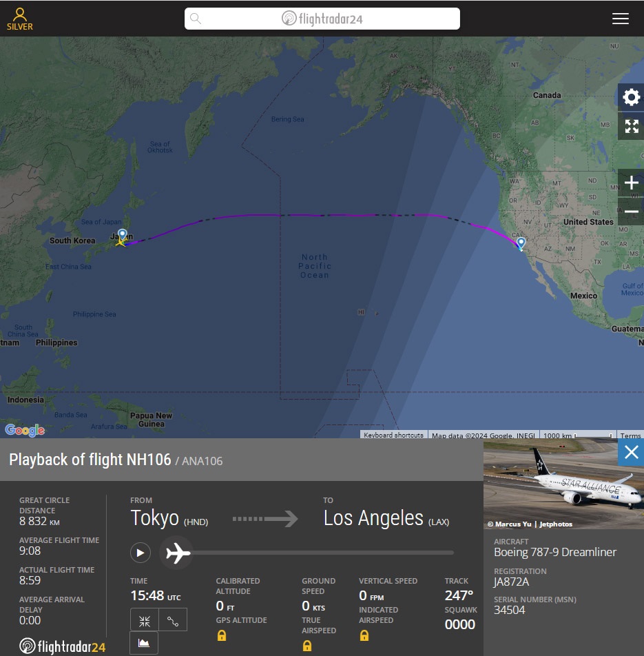 Рейс японской авиакомпании All Nippon Airways (ANA) NH106 вылетел из Токио в 01:06 1 января 2024 года и приземлился в Лос-Анджелесе 31 декабря 2023 года в 17:04. Такое путешествие во времени позволило пассажирам японской авиакомпании отметить Новый, 2024 год два раза – в Японии перед вылетом и в США по прилете.