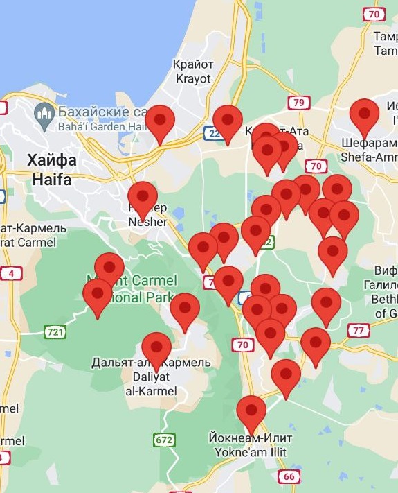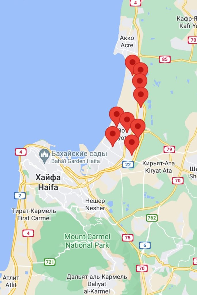 В 17:02 были обстреляны северные пригороды Хайфы (Крайот): Кирьят-Ям, Кирьят-Хаим, Кирьят-Бялик, Кирьят-Моцкин, промзона Кирьят-Бялика и промзона Шаар Нааман.