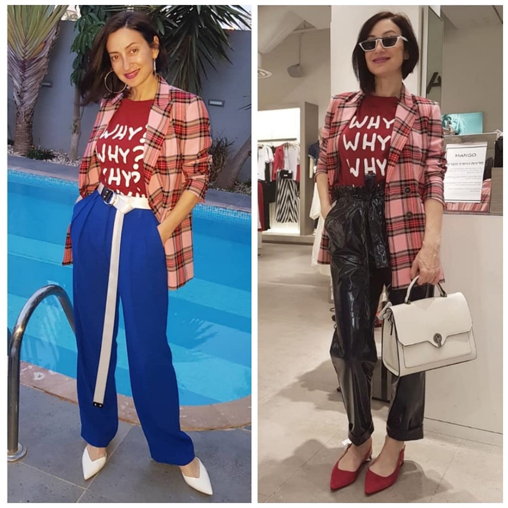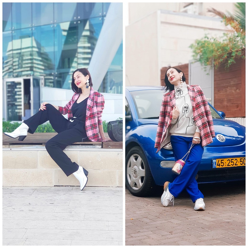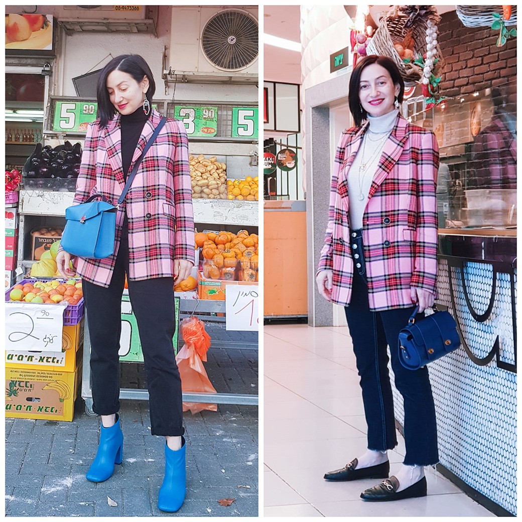В нем есть все, что мне нужно: современный мужской крой, яркая контрастная цветовая гамма и геометрический принт. Но внутренний прагматик все-таки нашептывал: «Он такой броский! Он быстро тебе надоест! Будет неприменим в повседневной носке и не подойдет к большинству вещей в гардеробе».