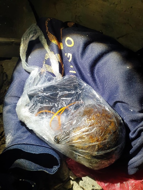 На фото, предоставленных полицией, указано место, где был спрятан заряд — прямо под стеной детского сада.