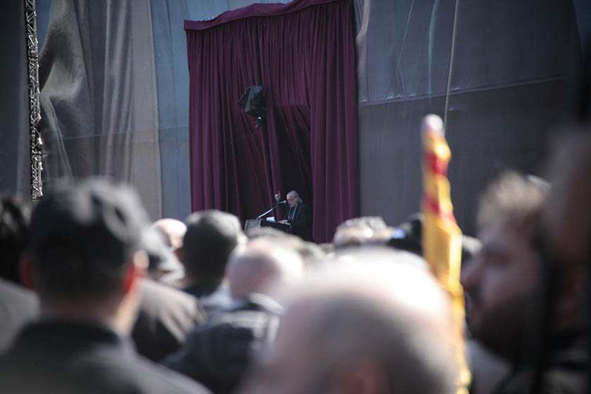 Настроение на церемонии создавали, в том числе, израильские истребители, пролетевшие над стадионом аккурат в момент проезда катафалка вдоль трибун. Ниже — репортаж иностранного журналиста, побывавшего на церемонии, настоящее имя которого редакция не раскрывает из соображений безопасности.