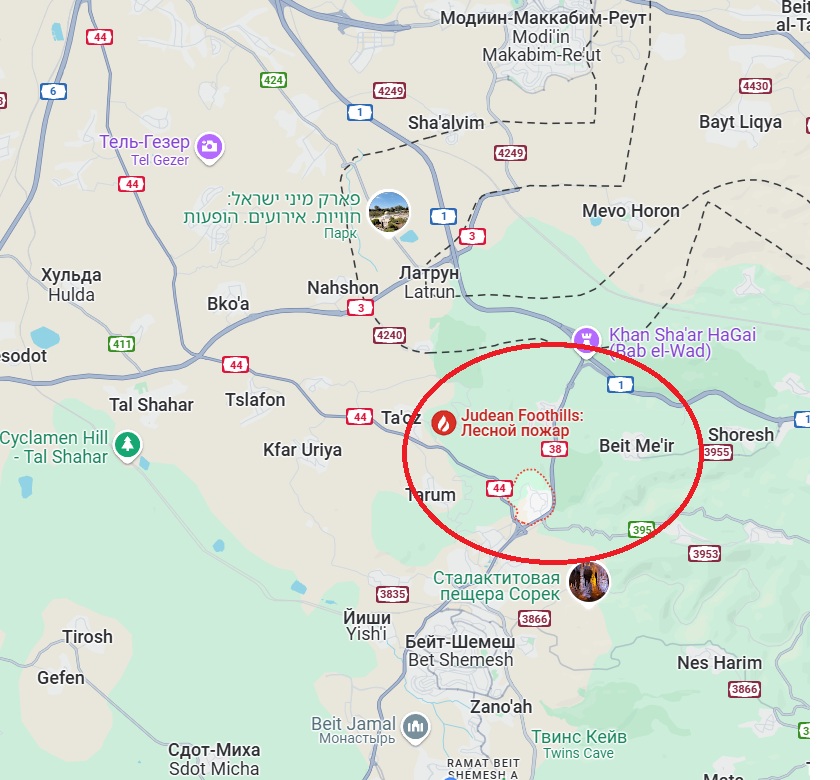 - Шоссе 38 (Шаар ха-Гай – Бейт-Шемеш): открывалось для движения, но в районе 16:30 было снова перекрыто из-за пожара.