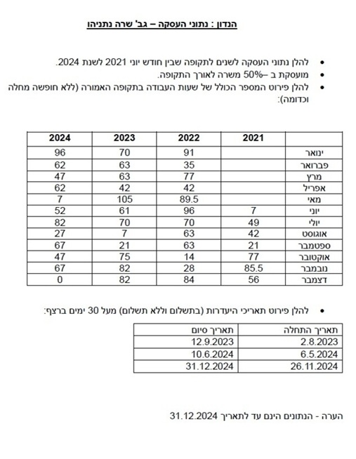 Как указано в документе, 26 ноября 2024 года госпожа Нетаниягу ушла в отпуск, из которого до сих пор не вернулась. Сейчас она находится в Майями, вместе с младшим сыном Яиром Нетаниягу.