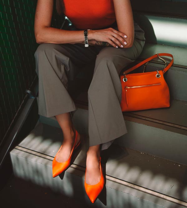 - Выбирая туфли и сумку, обратите внимание на цветовую гармонию. Оптимально, если цвета будут сочетаться, но не будут одинаковыми.