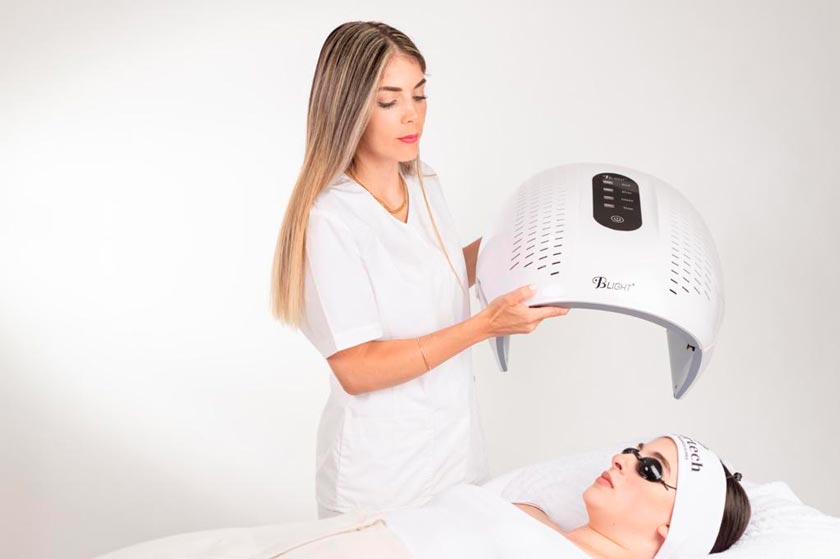 Устройство для фототерапии, основанное на новаторской технологии, которая обещает сократить время лечения угрей и кожных заболеваний, таких как розацеа и себорея, вдвое по сравнению с другими аппаратами, доступными в отрасли косметологии на сегодняшний день.