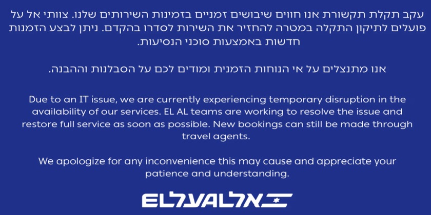 Сайт «Эль-Аль» недоступен уже несколько часов