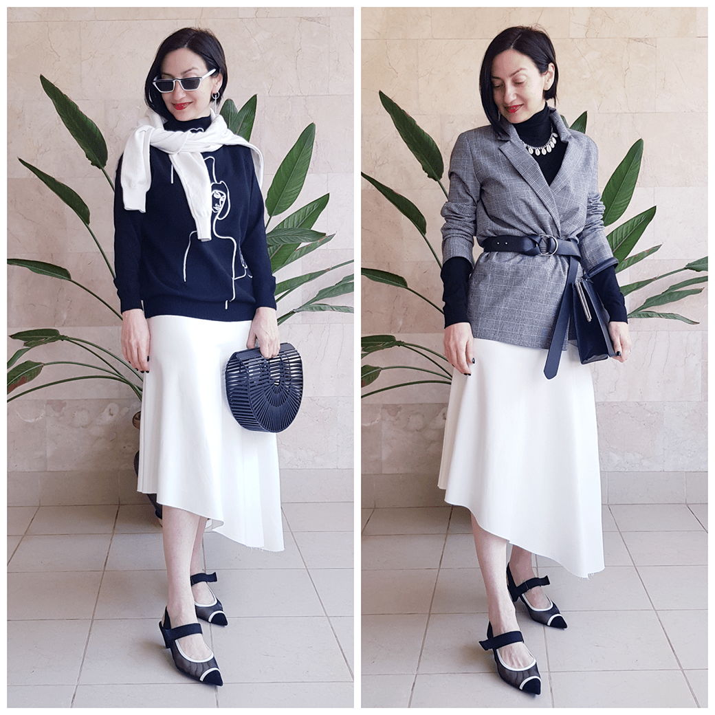 Естественно, мне захотелось приобрести что-то новенькое, трендовое для своего гардероба к этому замечательному мероприятию. Отправившись на шоппинг, я нашла белую ассиметричную юбку миди. В голове сразу сложилось множество стильных образов.