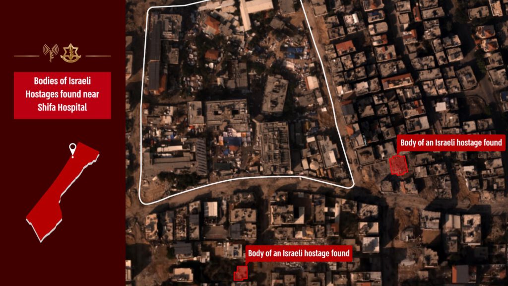 Сегодня ЦАХАЛ опубликовал карту, на которой отмечены здания, где нашли тела этих двух заложниц.