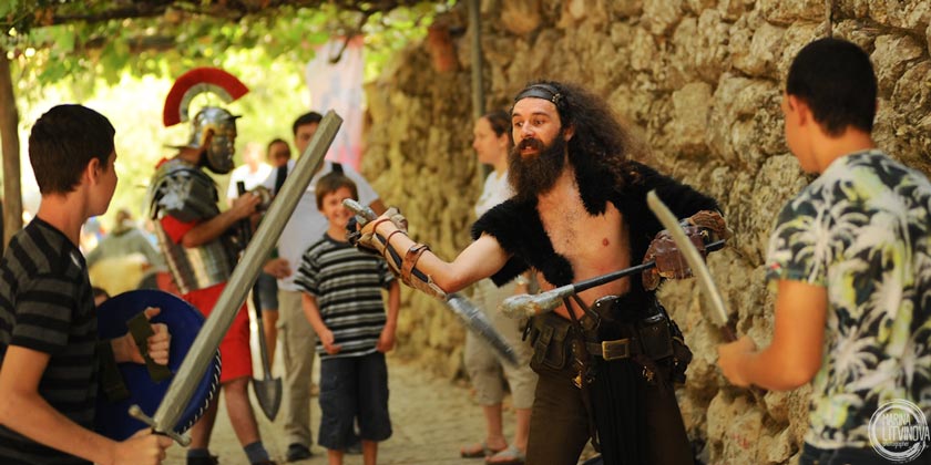На верхней террасе расположится кружок керамики и творчества. Увидеть мастерство кузнеца, а так же попробовать свои силы в выпечке лепешек можно будет на нижней площадке фестиваля. На террасе у источника раскинется военный лагерь по обучению детей мастерству фехтования. Арбалетный тир для самых маленьких и большой лучный тир расположатся на дальней террасе.