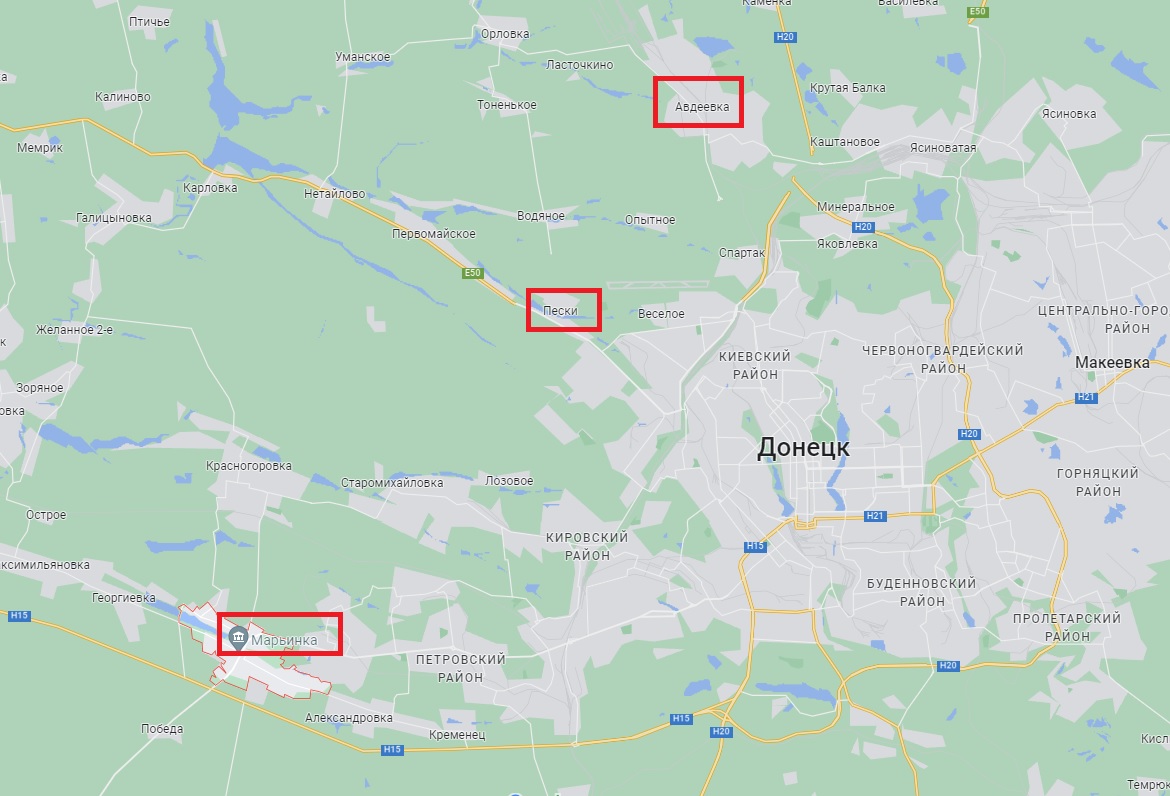 Эти три населенных пункта, расположенные к западу от Донецка все еще контролирует украинская армия, но силы РФ и самопровозглашенной ДНР усилили натиск на этом направлении.