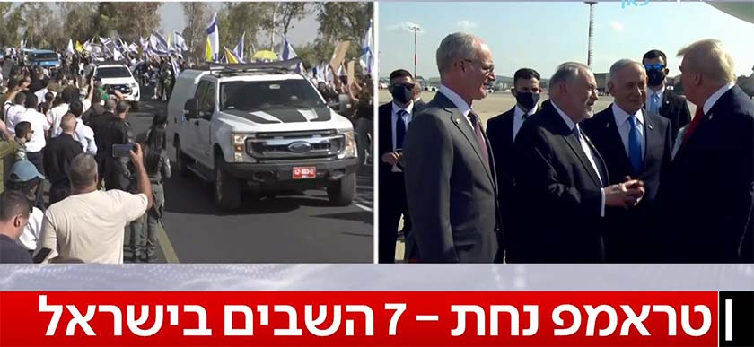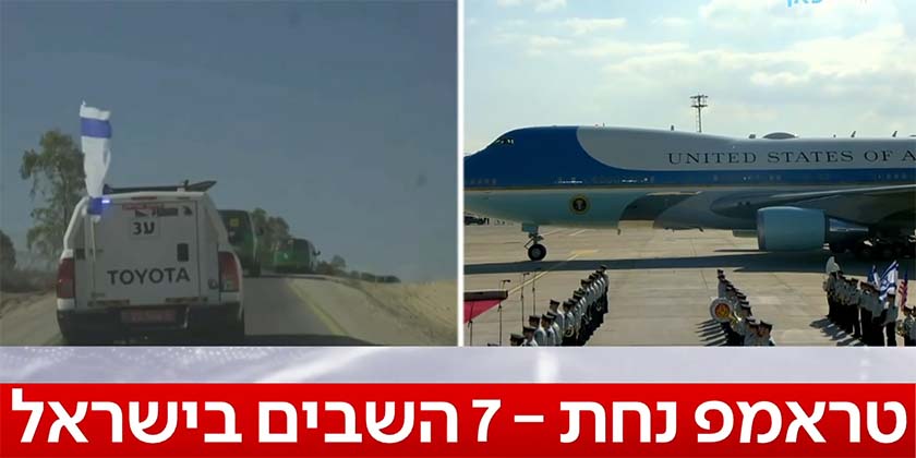 Визит проходит на фоне освобождения заложников. Перед тем, как совершить посадку в аэропорту Бен-Гурион, самолет Дональда Трампа пролетел над площадью Заложников.
