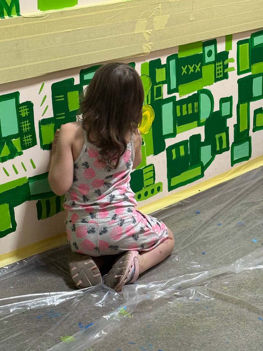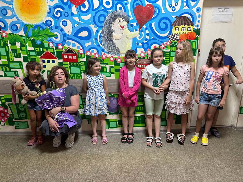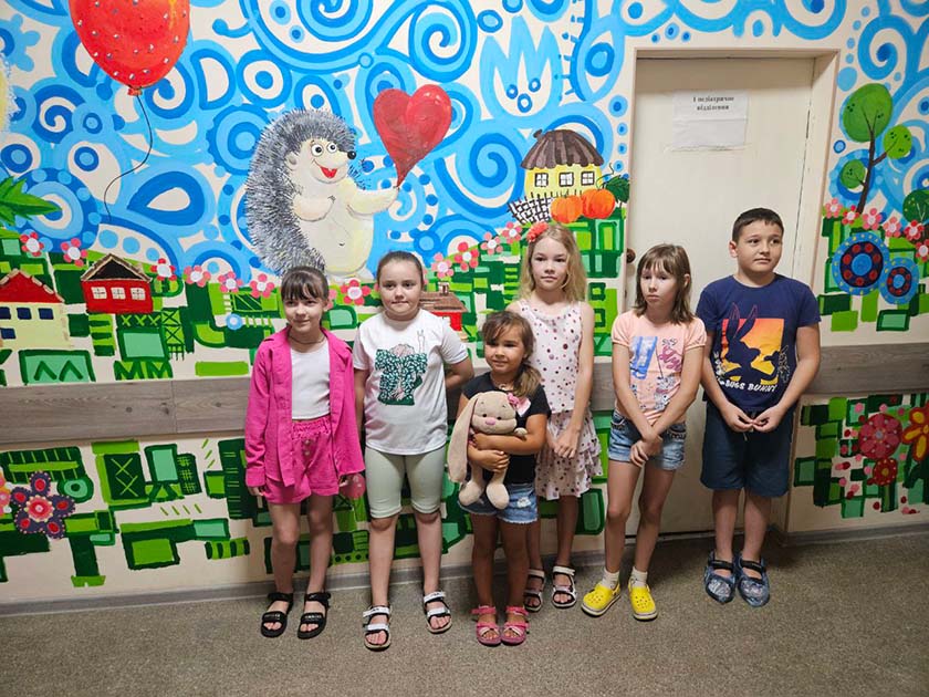 После лицея художница организовала украшение убежища в больнице «Охматдет». Этот проект тоже частично оплатило посольство. Происходило все недели через две после прилета российской ракеты, убившей мальчика, доктора и родственника одного из пациентов.