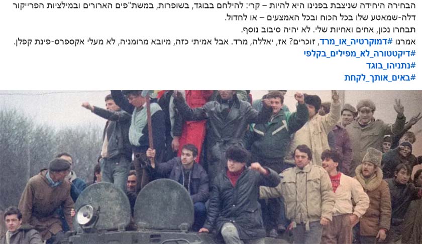 Хэштеги: #диктатуру_не_свергают_на_выборах, #Нетаньяху_предатель