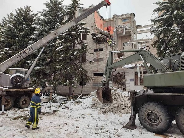Спасатели разбирают завалы в разрушенных жилых многоэтажках, где все еще могут быть люди. Работами занимается Межрегиональный центр гуманитарного разминирования и быстрого реагирования ГСЧС Украины. Саперы центра достают из под завалов и уничтожают взрывоопасные предметы.
