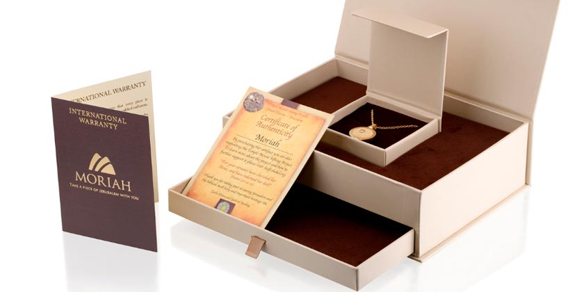 Предметы из коллекции MORIAH зарегистрированы как израильский патент компании IDC и выбраны для демонстрации в Музее Библии в Вашингтоне, округ Колумбия. Аутентичное украшение с Иерусалимским камнем, частицей древней Земли Мориа, станет изысканным и очень значимым подарком с глубоким духовным смыслом.