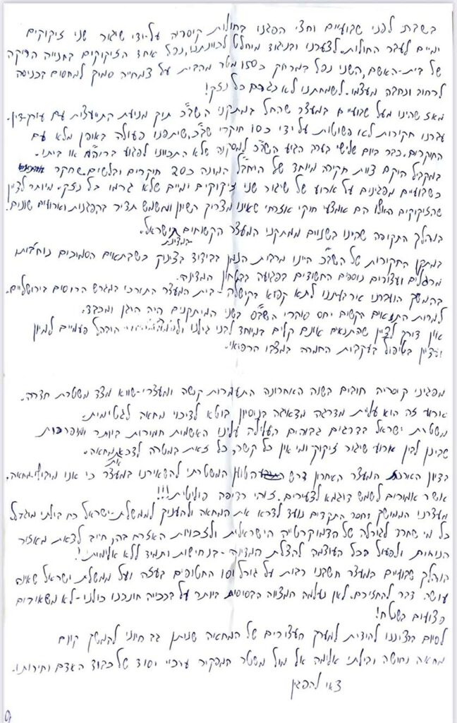 Далее четверо рассказывают о долгих допросах, которые вели десять сотрудников ШАБАКа — службы безопасности. «К третьему дню расследования дознаватели пришли к выводу, что у нас не было намерения причинить вред премьер-министру или его дому», — говорится в письме.