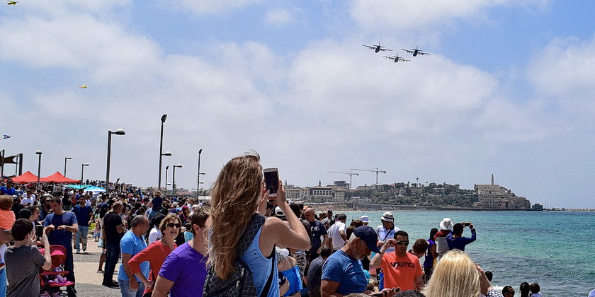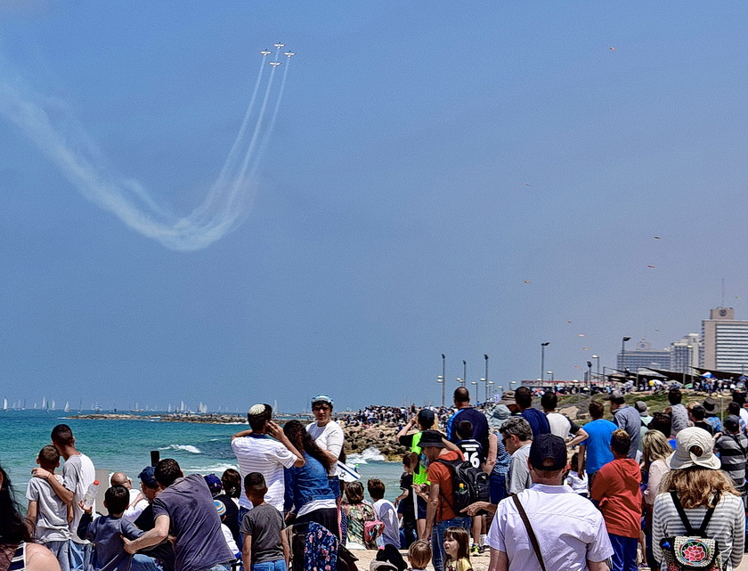 Тель-Авив (пляж): Первая группа самолетов в 11:34 (Beechcraft Super King Air («Цофит»), замыкающий в 11:53 самолеты F35i («Адир»). В 11:58 — 12:03 пилотажное шоу учебно-тренировочных самолетов T-6 Texan II («Эфрони»).