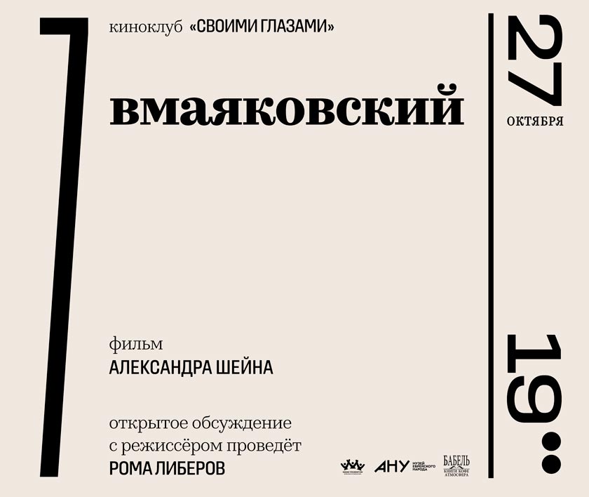 27 октября в АНУ — Музее еврейского народа случится седьмой показ киноклуба «Своими глазами», который будет посвящен 105-летию одной из самых масштабных трагедий XX века – Революции 1917 года. Ее главным певцом советская пропаганда называла Владимира Маяковского. Режиссер Александр Шейн собрал блестящую группу для долгой работы – получился фильм «ВМаяковский», который он впервые представит в Израиле.