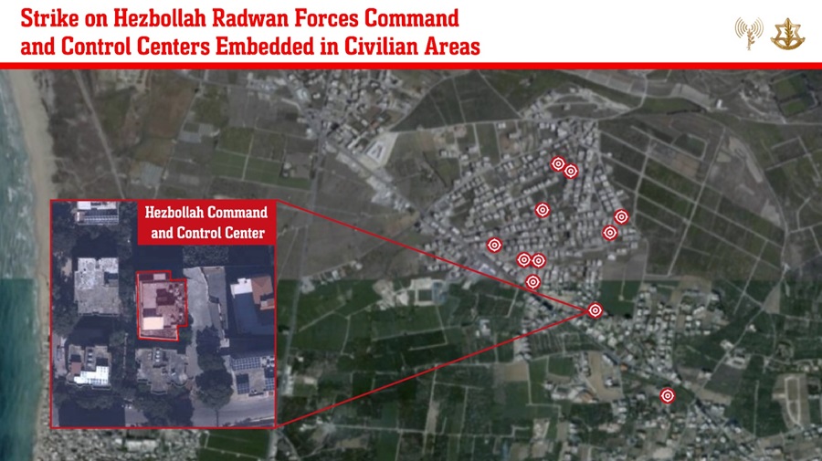 Среди целей были штабы сил «Радуан». Объекты находились посреди гражданской застройки.